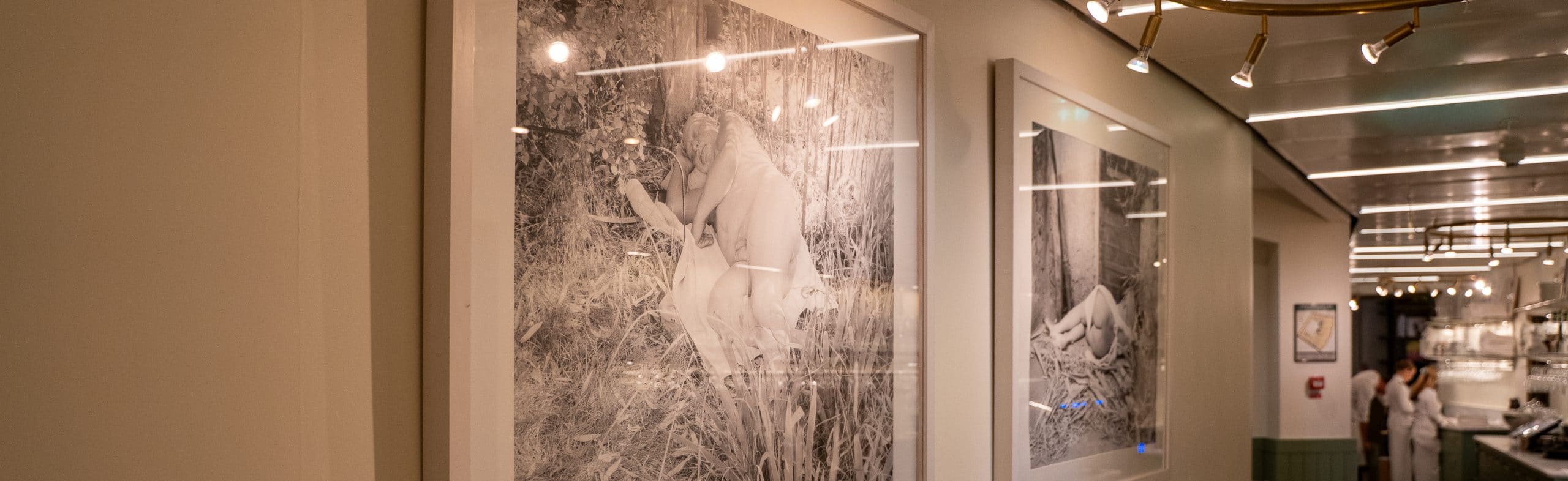 Två verk ur serien ”Sleeping bodies”, från Christer Strömholms 60-års fest (Angelica samt Christer). Den drömska bildsviten Sleeping Bodies (1995) av Tuija Lindström är ett poetiskt och visuellt lågmält verk som rör sig i gränslandet mellan dokumentation och hommage. Serien består av pigmentprints i svartvitt, där kroppar vilar i ett tillstånd av stillhet och kontemplation. Fotografierna är tagna i anslutning till Christer Strömholms 60-årsdag, och fungerar som en subtil hyllning till hans konstnärskap och inflytande över den svenska fotografins utveckling.