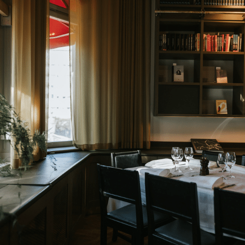 På vår övervåning erbjuder vi fyra exklusiva privata rum med stora, vackra fönster som vetter ut mot pulserande Stureplan. Här kan du och ditt sällskap njuta av förstklassig mat och dryck i en unik atmosfär där kulinariska upplevelser möter konst och kultur.